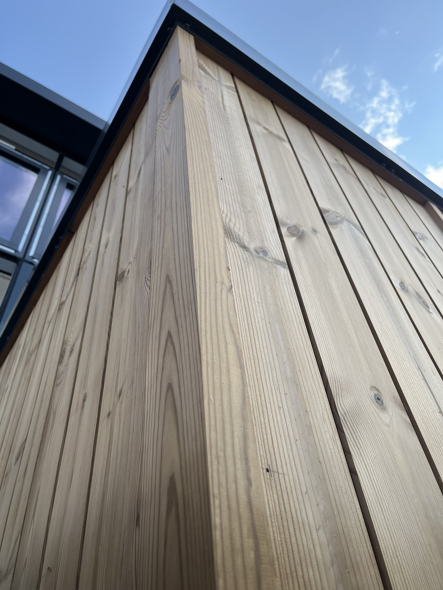 The materials chosen for the facade complement the architectural language of the campus, with the use of stone and timber to denote entrances allready established. The detail of the proposals were carefully designed to work alongside the existing structural and internal constraints of the retained building. Opaque glazing was used to maintain a consistent language across the facade whilst minimising solar gain. The opaque glazing was paired with high and low level opening windows to allow the users of the spaces to control the amount of natural ventilation each classroom received and to maintain the views towards the river to the south and the senior school campus to the north.