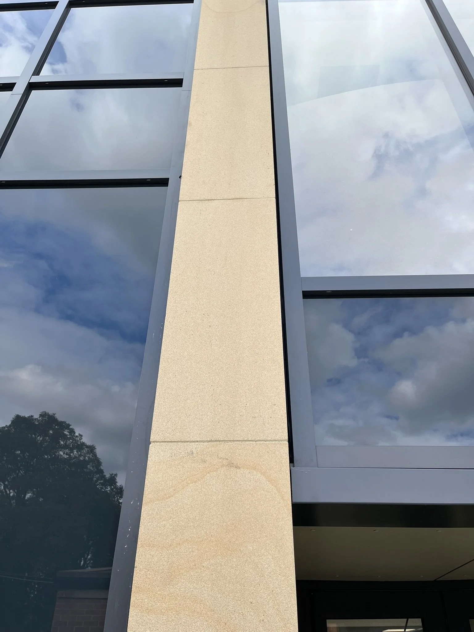 The works involved removing the 1960s steel and glass facade and installing a new curtain walling cladding system with stone and timber detailing to the entrances. The existing ground and first floor classrooms were refurbished internally to complement this new facade. The new facade vastly improves user comfort through better thermal control and new high and low level opening windows.
